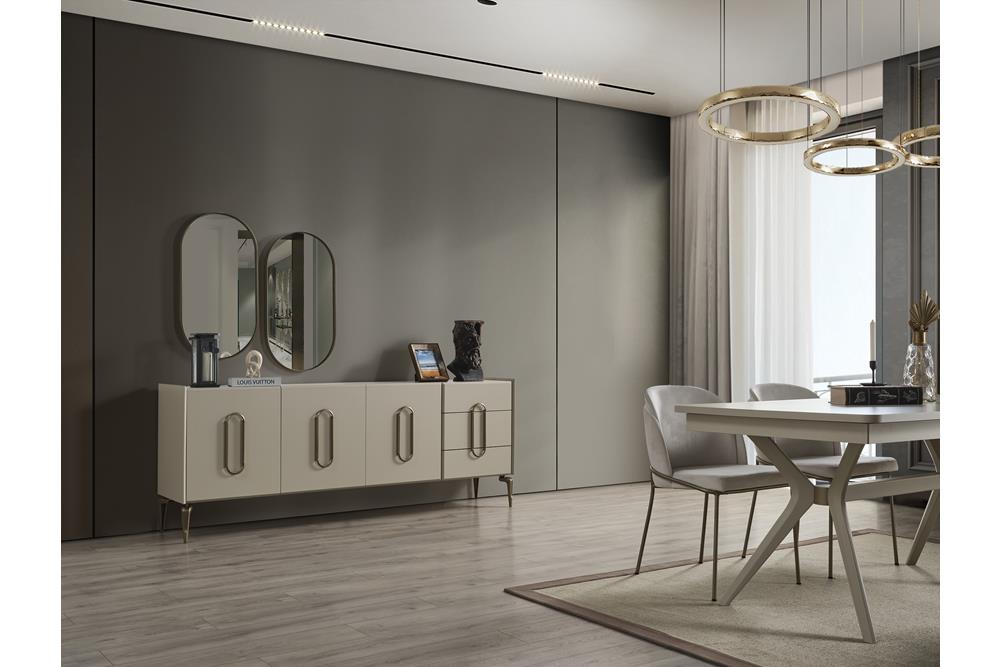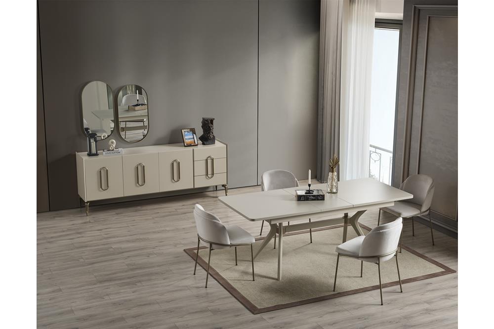 Monaco Yemek Odası Takımı İnegöl’de üretilmektedir. Takım içeriği şu parçalardan oluşmaktadır;